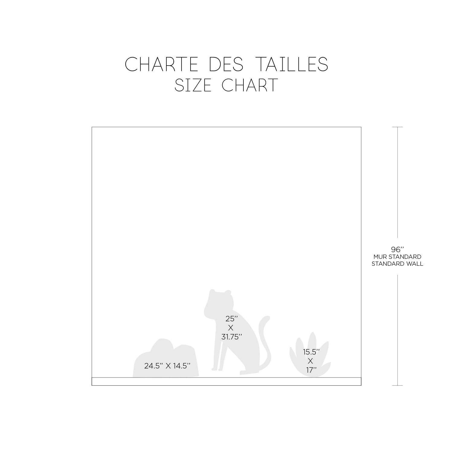 - Le guépard mesure 25″ x 31.75″;